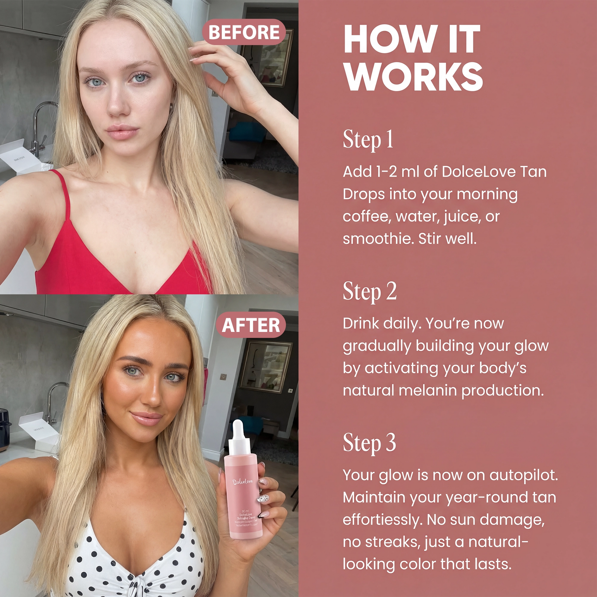Absolutely! DolceLove Tan Drops works by stimulating your body's own melanin production - the same pigment that creates a natural tan. Our ingredients like L-Tyrosine and Copper help boost this process without any UV exposure. Thousands of customers have experienced remarkable results, and you can see their before/after photos throughout our site.